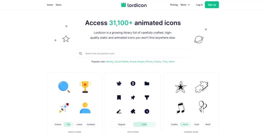 Platforma z interaktywnymi i animowanymi ikonami, które idealnie sprawdzą się na nowoczesnych stronach.