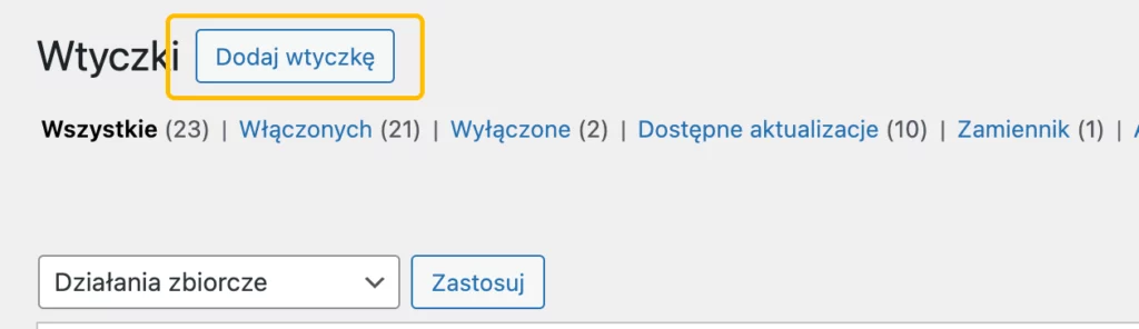 - Zaloguj się do panelu administracyjnego WordPressa i przejdź do sekcji „Wtyczki”.