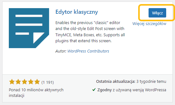 Po zainstalowaniu wtyczki musimy już tylko „włączyć” wtyczkę.