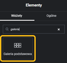 W menu bloków wyszukaj opcję „Galeria podstawowa” i dodaj ją w wybranym miejscu.