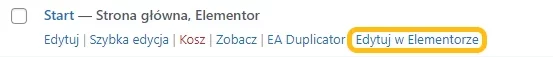 Znajdź podstronę, na której chcesz dodać zdjęcie, i kliknij „Edytuj w Elementorze”. Strona zostanie przekierowana do edytora Elementor.