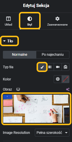 Jak dodać zdjęcie jako tło sekcji lub kolumny?