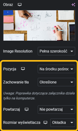 Pozycja – odnosi się do tego, w jakim miejscu obraz tła zostanie umieszczony w sekcji lub kolumnie.