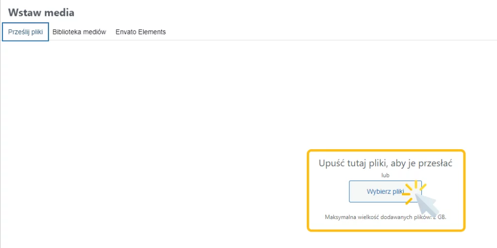 Wstaw zdjęcie z biblioteki mediów lub załaduj nowe.